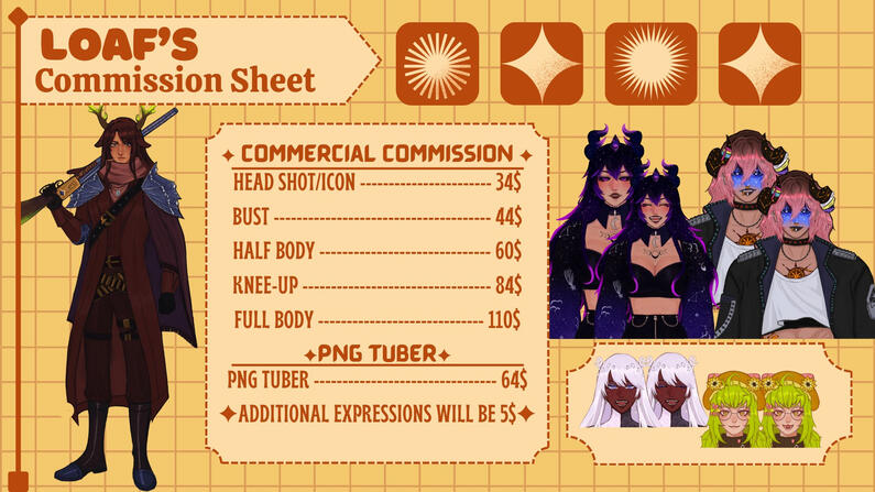 ✦ For COMMERCIAL USE/ RIGHTS,see here there will be different prices based on the commissioner's purchased item.